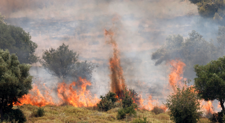 جانب من الحرائق التي اندلعت نتيجة لهجوم حزب الله على كيان الاحتلال