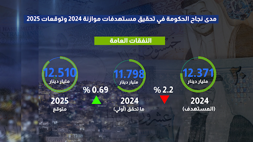واستنادا لهذه التغيرات، ارتفع عجز الموازنة العامة 2.440 مليار دينار وفق الارقام الاولية للعام الحالي وباعلى من المستهدف، فيما توقعت انخفاض محدود في أرقام موازنة 2025.